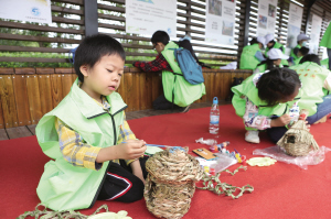 活動(dòng)現(xiàn)場,各個(gè)家庭可謂各顯神通。他們有的用彩筆為鳥巢涂色,有的則用帶有葉子的藤條裝扮鳥巢,有的則在鳥巢上寫下愛護(hù)鳥類的美好心愿。